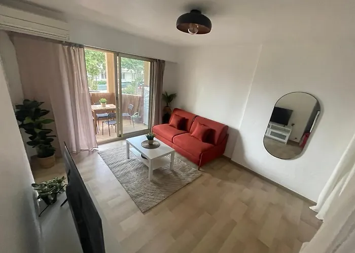 Joli Studio Au Centre De Juan Les Pinsアパ-トメントアパ-トメントには,器具でいっぱいの台所,衛星放送チャンネルの薄型テレビ,テレビ と冷暖房付きの客室があります. サリ ビ-チまで1.8キロで,エクスフロラ公園まで車で5キロ以内です.